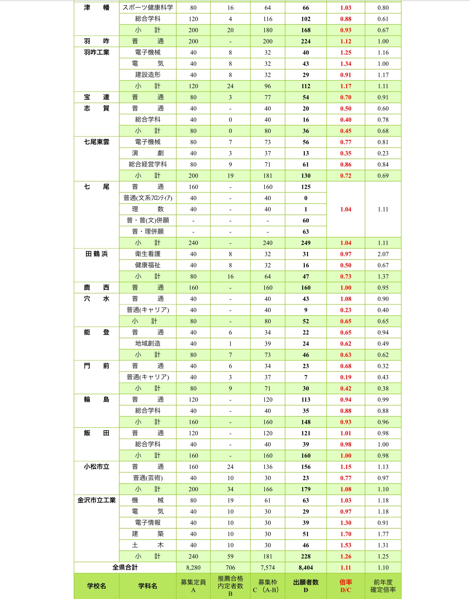 石川県/定時制高等学校の入試情報(平成28年度)①