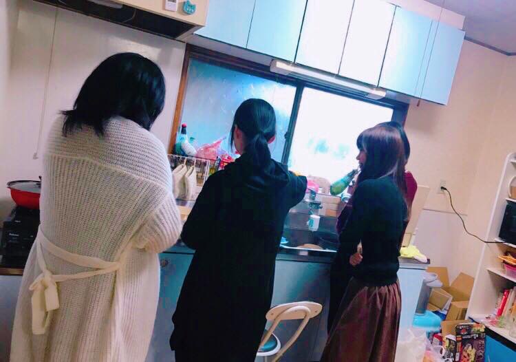 空色のキッチンでテキパキと動く女の子達。料理はお手の物な様子です。