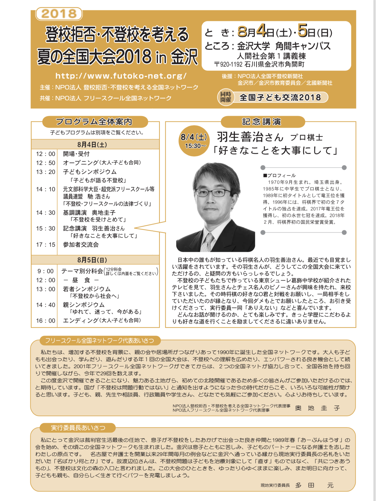 不登校・登校拒否を考える夏の全国大会 2018 in 金沢