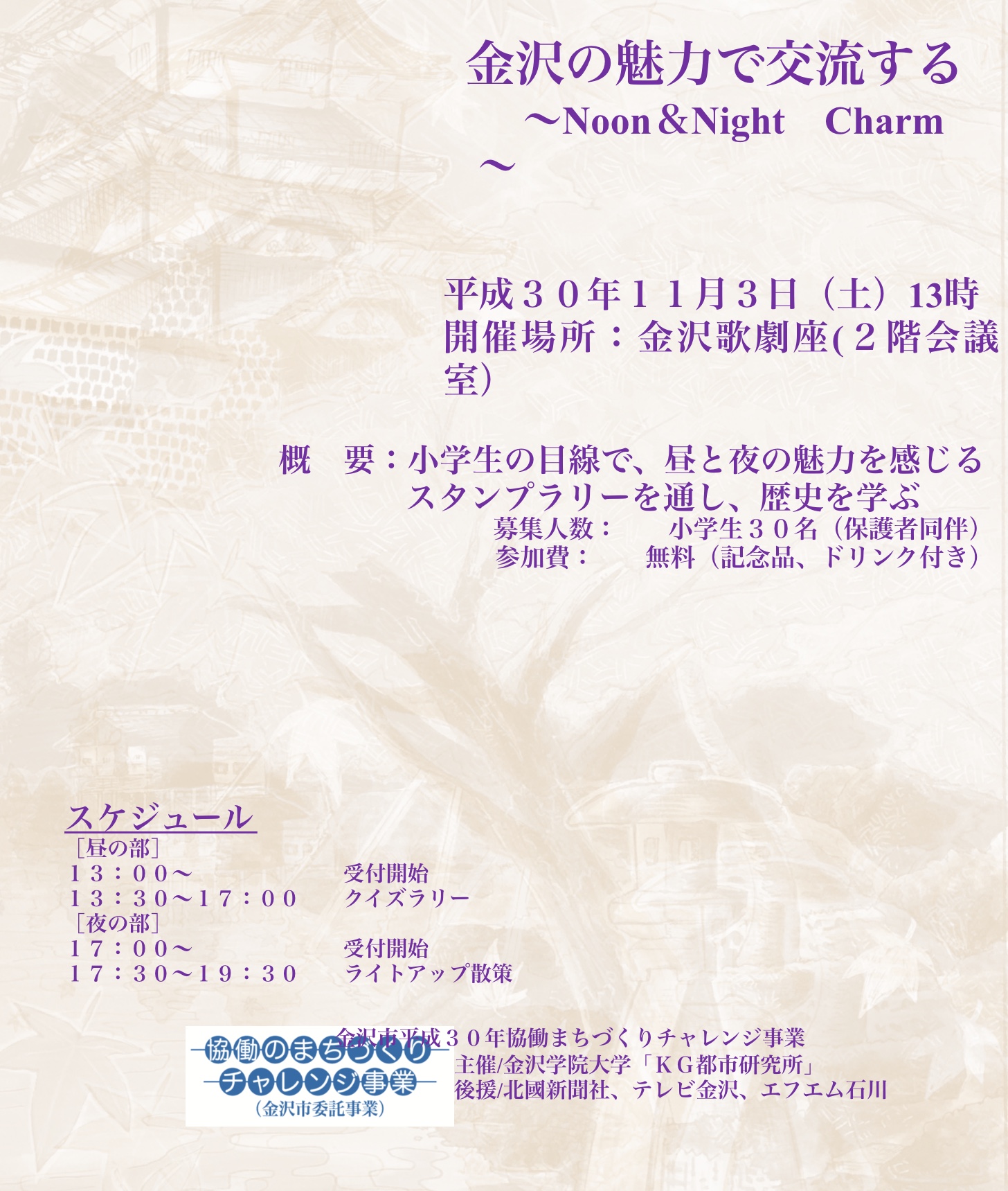 2018/09/2711月3日土曜日に、「金沢の魅力で交流する~Noon & Night Charm~」が開催されます。